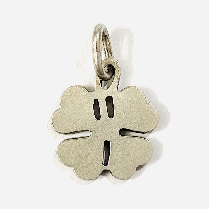 Půvabný přívěšek ve tvaru čtyřlístku zdobeným atypicky červeným smaltem, detailní vystižení žilkování a struktury stonky rytím. Vídeňská klenotnická práce z přelomu 19. a 20. století. Zhotoveno z jemně zlaceného stříbra o ryzosti 750/1000; písmeno "A" (značící vídeňský puncovní úřad) a další značení na oušku. Hmotnost 1,83 g, celková délka 22 mm, šířka 14,5 mm. Zlacení výrazně setřeno, ponecháno s jemnou přirozenou patinou, lze vyčistit, jinak celkově ve velmi zachovalém stavu.