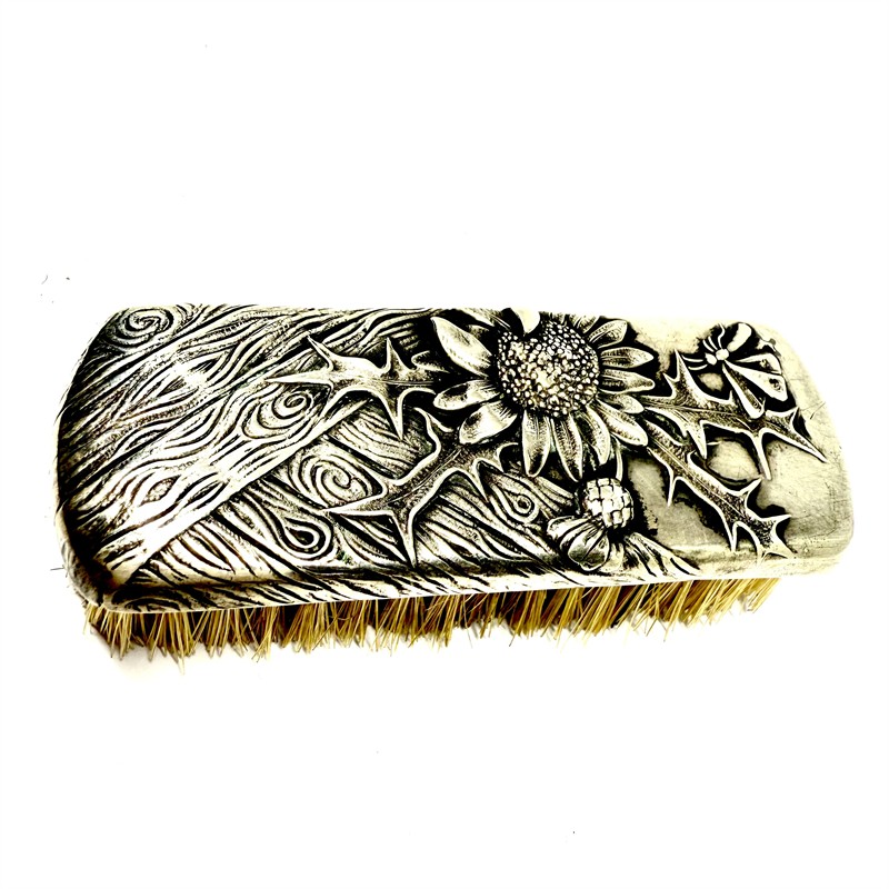 č. 181 182 Stříbrný toaletní kartáček s motivem bodláků