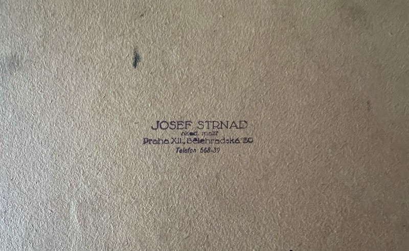 Jos. Strnad (*1889) - Pomlázka na Chodsku, olej / karton, rozměr 40 x 30 cm (50 x 40), rámováno v krásném slohovém rámu, signováno, na zadní straně autorské razítko. Výborný figurální malíř, zachycoval lidové zvyky a tradice převážně z Chodska, studoval v Záhřebu a na pražské Akademii u prof. Pirnera, krásná práce velmi vyhledávaného sbírkového autora.