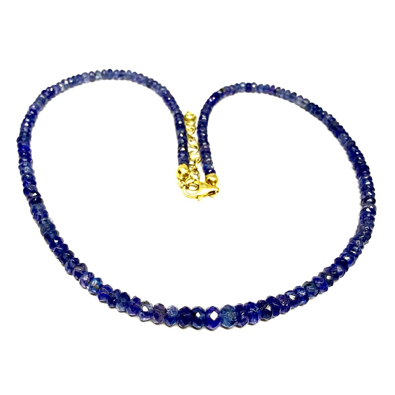 Půvabný náhrdelník zhotovený z přírodních tanzanitů modrofialového odstínu. Šperk je zakončen karabinou ze zlaceného stříbra sterlingové ryzosti (925/1000). Náhrdelník je dlouhý cca 43 cm plus 5 cm prodlužovací řetízek. Perfektní stav.