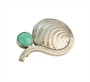 Theodor Fahrner, raritní, sběratelsky vzácná stříbrná brož zdobená amazonitovým kabošonem, stříbro o ryzosti 935/1000 o celkové hmotnosti 6,25 g, ( jehla z obecného kovu ), rozměry brože: 3,5 x 2,5 cm, Atest Puncovního úřadu.