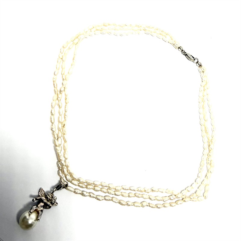 č. 181 658 Třířadý náhrdelník z říčních perel se závěsem anděla