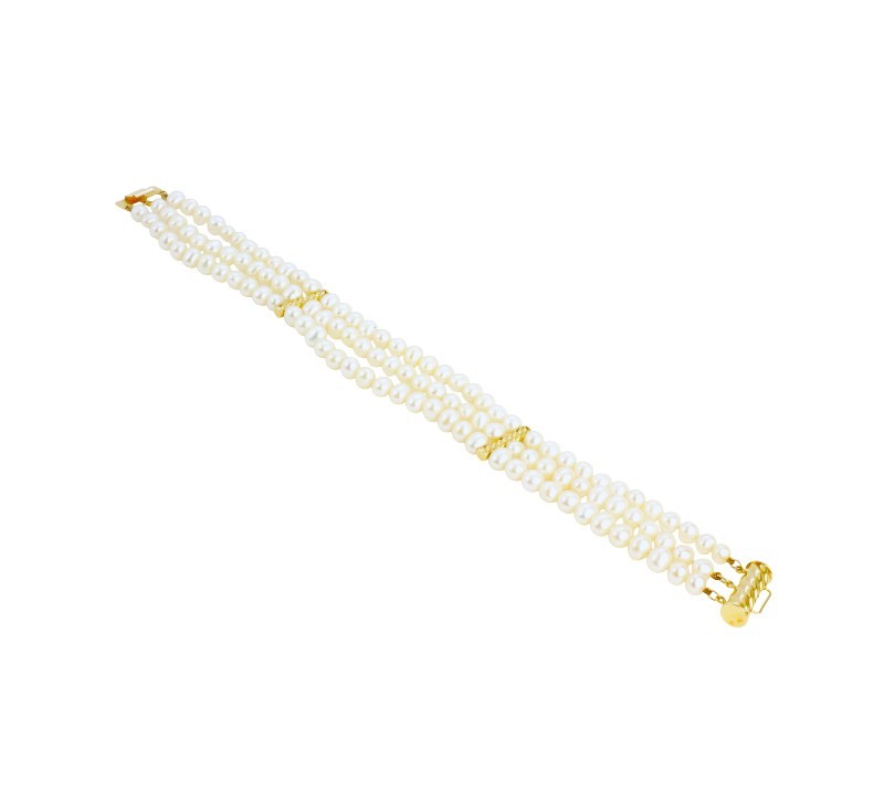 Třířadý perlový náramek se zlatým uzávěrem