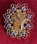 Velká stříbrná brož achát, ametyst