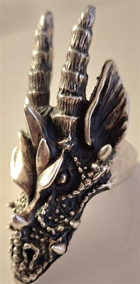 č. 181 728 Velký stříbrný prsten s hlavou baziliška