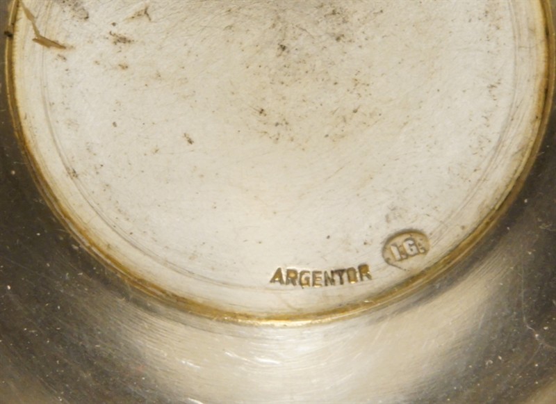 Drobný dekorativní košíček uvnitř s čirou skleněnou miskou. Postříbřená mosaz po obvodu s filigránsky jemným ornamentem. Práce vídeňské firmy ARGENTOR - Werke Rust & Hetzel, která produkovala kovové zboží s přidanou uměleckořemeslnou hodnotou. Počátek minulého století v secesním stylu - Art nouveau. Uvnitř značeno viz posl. foto. Dobrý stav, rozměr - v. 12cm, prům. 8cm