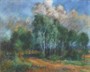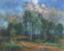 Pastel na papíru 25 cm x 31,5 cm. Signováno vpravo dole s datací 1929. Březový háj se stromy, se kterými si silně pohrává vítr před blížící se bouří, jejíž předzvěstí jsou velká mračna. V jednoduchém rámu s reliéfní strukturou a měděnou patinou, s paspartou a sklem. Československo, rok 1929. Celkový rozměr s rámem 38 cm x 42,5 cm.