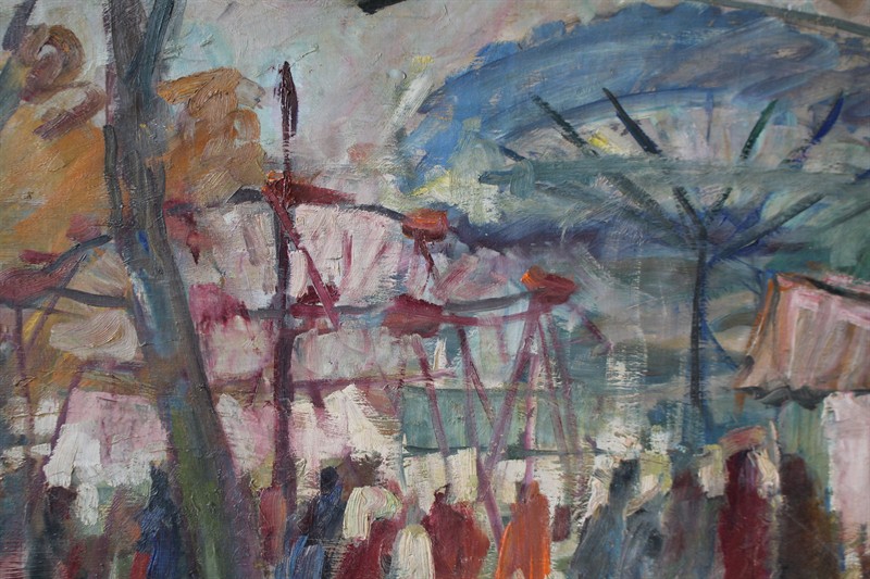 Zdeňka Heritesová (1896 - 1975) - Na pouti  Signováno viz foto. Vyhledávaná česká malířka. Studovala v Praze na UMPRUM, po studiích měla možnost podniknout studijní cesty do zahraničí, mimo jiné do Francie. Ve své tvorbě se věnovala jak volné malířské, tak grafické tvorbě. Olej na plátně. Rozměry malba: 68 x 100 cm.