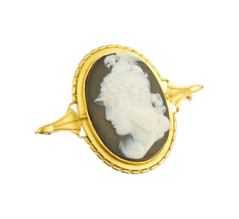 Zlatá biedermeier brož s kameji