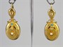 Zlatá biedermeierová souprava náušnic, náramku a závěsu/brože, zdobena jemným ornamentálním gravírováním, osazena tyrkysy a perlami, celková hmotnost Au 44,13 g/580/1000, punc liška (Z - 27), Praha, České království, třetí čtvrtina 19. století,. Souprava je ve výborném, téměř nenošeném stavu. Velikost závěsu/brože 5,1 x 3,1 cm bez ouška, náušnic 3,7 x 1,5 cm, vnitřní rozměry náramku 4,7 x 5,8 cm