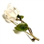 Velmi půvabná zlatá brož zdobená drahými kameny - růže. Květ byl zhotoven z ručně vyřezaného růženínu, střed osazen briliantem. Listy vyřezány z nefritu. Zlato o ryzosti 14karátů (585/1000), celková váha 12,20 g. Rozměry cca 6 x 4,5 cm. Značeno autorskou a ryzostní značkou, zhotoven certifikát Puncovního úřadu. Výborný stav.