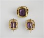 zlatá souprava s ametysty, náušnice, prstenu, kolier a prsten, Au 25,50 g/585/1000, Československo, kolem r. 1935, dobový punc (lvíček), u náušnic atest Puncovního úřadu; rozměry náušnic 1,6 x 2,2 cm, rozměry kolieru 3,5 x 2,3 cm, rozměry hlavy prstenu 2,2 x 2 cm; velikost prstenu 55