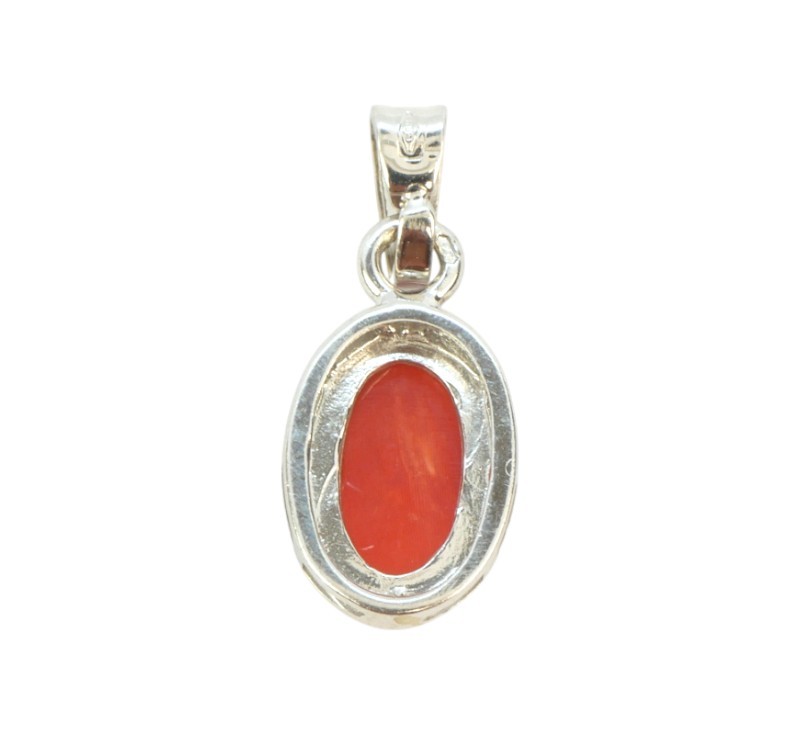 Souprava - prsten, náušnice a přívěšek - z bílého zlata ryzosti 585/1000 zdobená mořskými korály. Rozměry korálu 1 x 0,8 cm. Velikost prstene 56. Celková hmotnost soupravy 8,32 g.