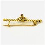Elegantní, decentní brož, jejíž tělo je tvořeno tordovaným dříkem s koncovými kuličkami, hlavice v podobě prostorově efektního uzle osazeným v mnohokraponové koruně přírodním rubínem kulatého brusu. Detailně zpracováno, kvalitní západoevropská zlatnická práce z konce 19. století, dovezeno na území monarchie ve stejném období. Zhotoveno z narůžovělého žlutého 14 karátového zlata, tj. o ryzosti 585/1000; rakousko-uherský dovozový punc Z-29 (AV) s písmenem "A" (značící vídeňský puncovní úřad) na jehle. Hmotnost 1,30 g, délka 31 mm, šířka 6 mm. Zapínání na "C" sponu v pořádku, ve velmi zachovalém stavu, odborně vyčištěno vyleštěno zlatníkem.