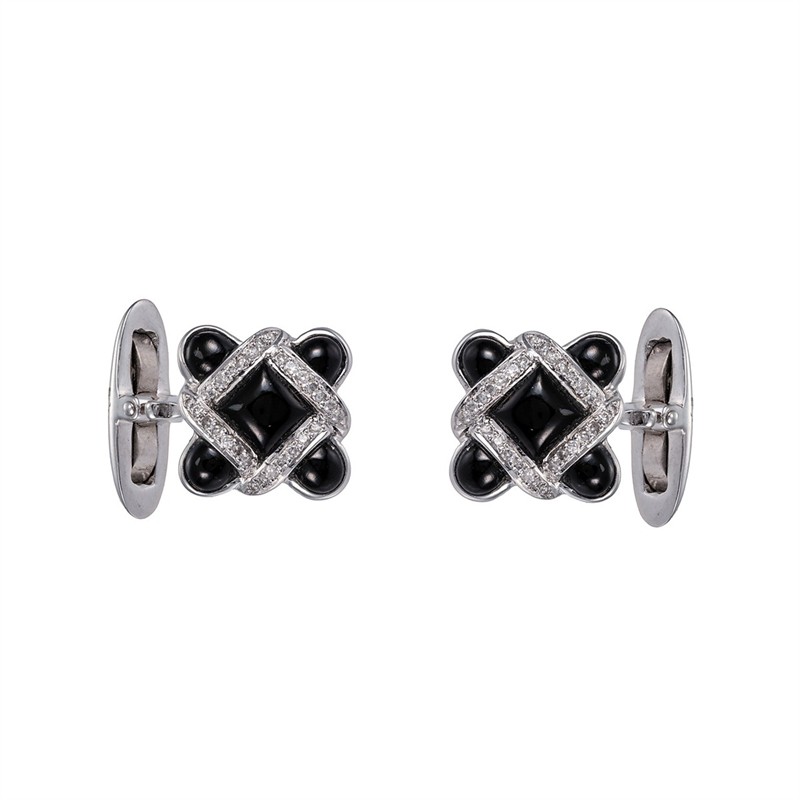 Zlaté manžetové knoflíky s onyxem a přírodními diamanty