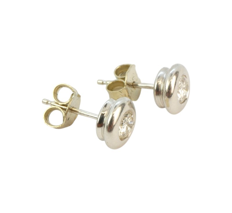 Náušnice z bílého zlata ryzosti 585/1000 zdobené diamanty briliantového brusu o hmotnosti 0,5 ct. Průměr náušnic 6 mm. Celková hmotnost 1,85 g.