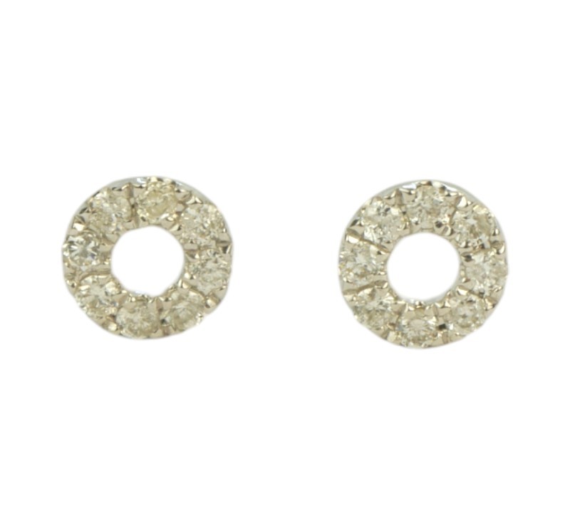 Náušnice ve tvaru věnečku z bílého zlata ryzosti 585/1000 zdobené diamanty o celkové hmotnosti 0,10 ct. Celková hmotnost obou náušnic je 0,76 g. Rozměry 0,5 x 0,5 cm.