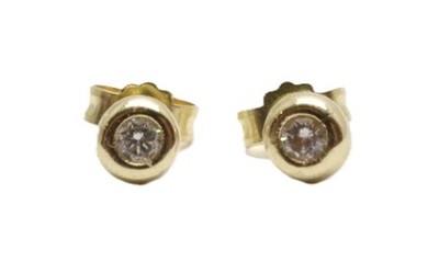 Zlaté náušnice s diamanty. Žluté zlato 585/1000. Přírodní diamanty, kvalita SI2 - I1, barva I - J, celková váha 0,12 ct. Váha náušnic: 0,93 g. Rozměr náušnic: 0,4 cm x 0,4 cm.