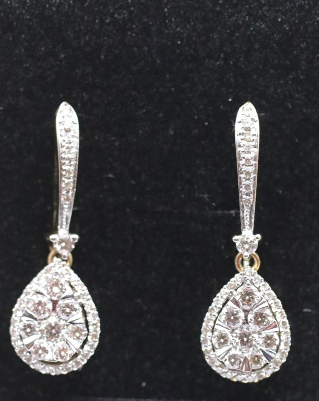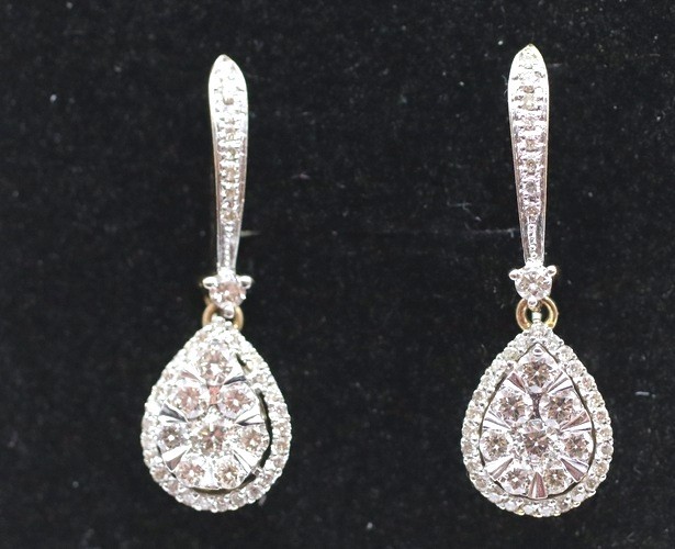 Zlaté náušnice s diamanty. Žluté zlato 585/1000. Přírodní diamanty, kvalita VS2 - SI1, barva G - H, celková váha 1,15 ct. Váha náušnic: 4,33 g. Délka náušnic: 2,9 cm.