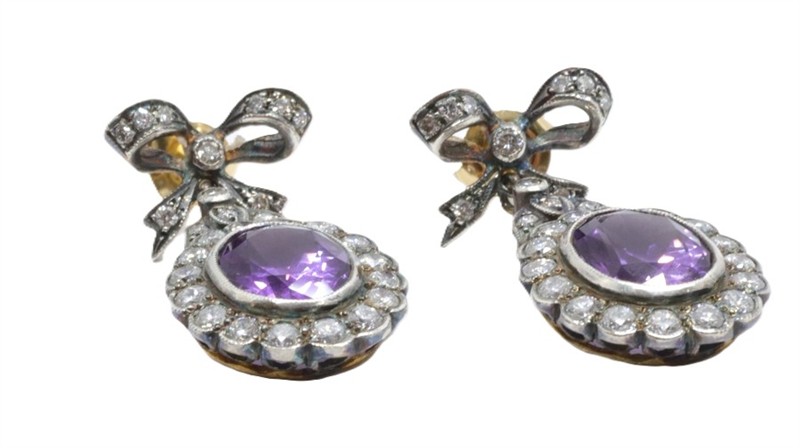 č. 180 047 Zlaté náušnice s diamanty a ametysty
