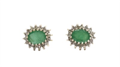 Zlaté náušnice s diamanty a smaragdy. Bílé zlato 375/1000. Přírodní smaragdy, celková váha 1,6 ct. Přírodní diamanty, kvalita SI1 - I1, barva H - J, celková váha 0,45 ct. Váha náušnic: 2,99 g. Rozměr náušnic: 1,2 cm x 1 cm.