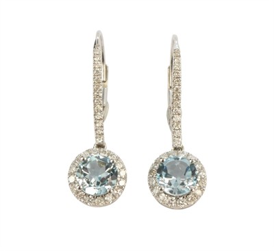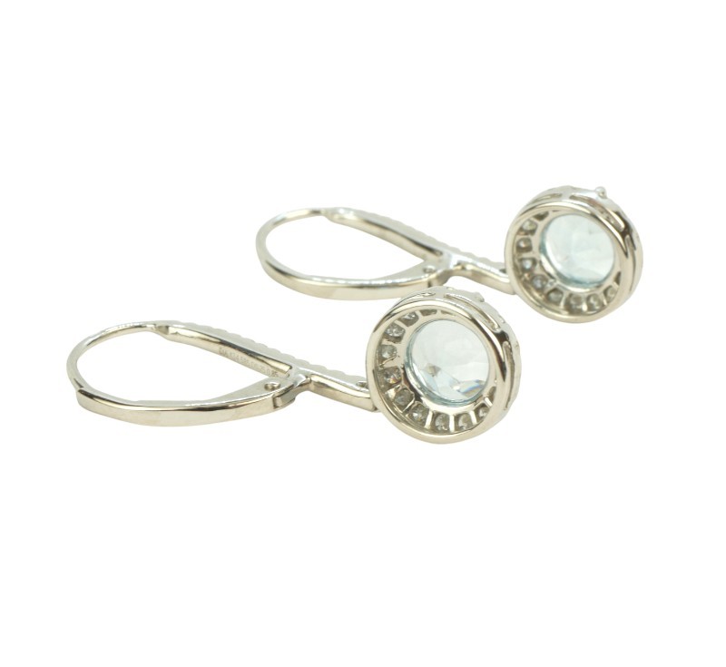 Náušnice z bílého zlata ryzosti 585/1000 zdobené diamanty o celkové hmotnosti 0,50 ct a topazy o hmotnosti 1,70 ct. Celková hmotnost obou náušnic je 2,90 g. Rozměry 2,5 x 1,0 cm.