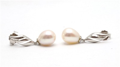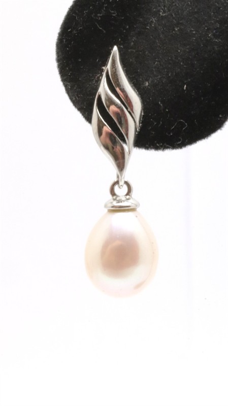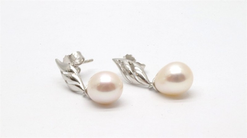 Zlaté náušnice s perlami. Bílé zlato 585/1000. Kultivované perly. Váha náušnic: 3,38 g. Délka náušnic: 2,5 cm.