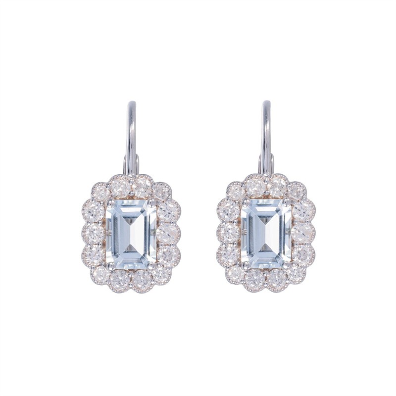 č. 182 197 Zlaté náušnice s přírodním akvamarínem a diamanty
