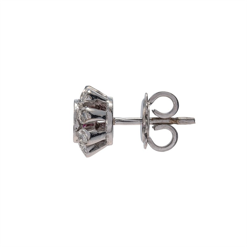 Bílé zlato o ryzosti 585/1000 váha 2,75 g přírodní růžový safír 2 ks 0,23 ct, průměr 4,0 mm přírodní diamant 16 ks 0,24 ct průměr 0,9 cm výborný stav osvědčení puncovního úřadu kameny s garancí pravosti zkontrolované v gemologické laboratoři