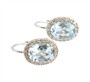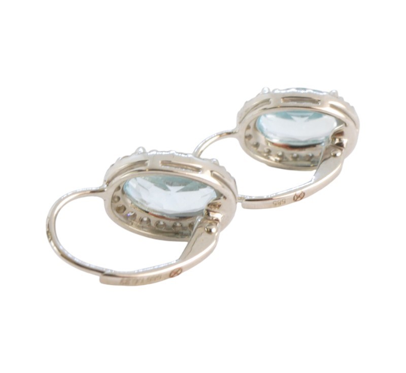 Náušnice z bílého zlata ryzosti 585/1000 jsou osazeny topazy a diamanty briliantového brusu o celkové hmotnosti 0,23 ct. Celková hmotnost obou náušnic je 2,46 g. Rorměry 11x10 mm.