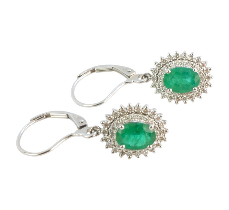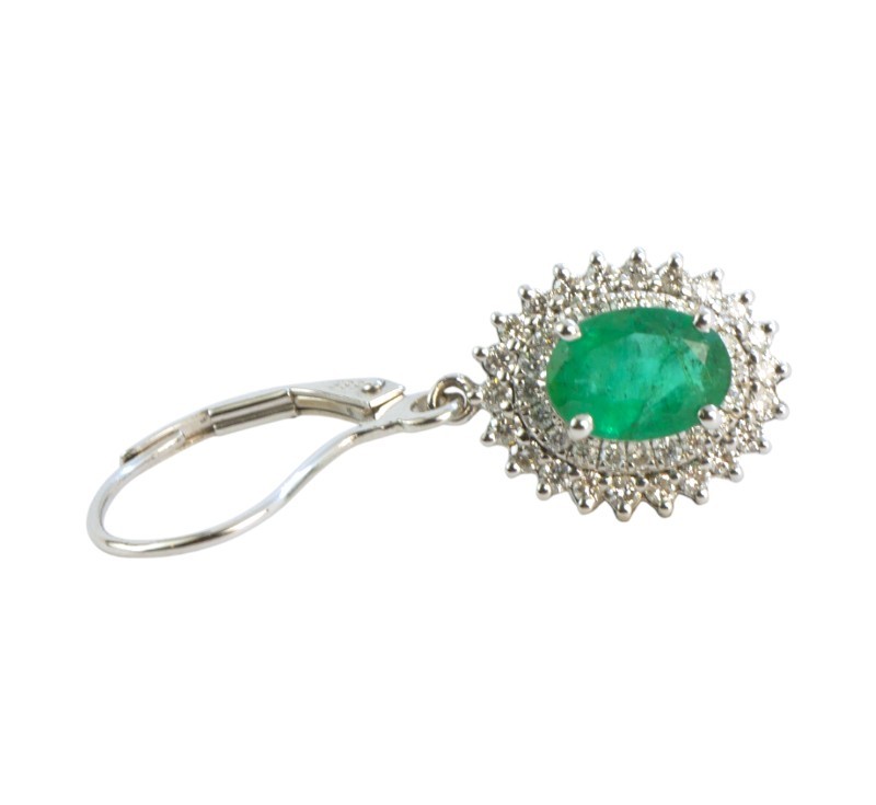 Náušnice z bílého zlata ryzosti 585/1000 jsou osazeny smaragdy a diamanty briliantového brusu o celkové hmotnosti 0,60 ct. Celková hmotnost obou náušnic je 3,24 g. Délka náušnice 2,9 cm.