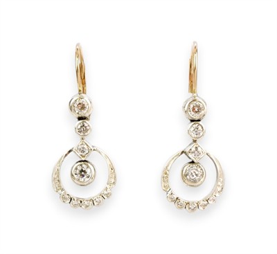 Tyto secesní náušnice jsou originální variantou náušnic typu "sněhuláci", kdy jsou spodní kameny navíc akcentovány jemně zdobeným kruhem. Jsou zhotoveny ze zlata ryzosti 585/1000 a zdobí je diamanty starého briliantového brusu celkové hmotnosti cca 1,0 ct. Kameny jsou osazeny ve stříbře. Délka náušnic je 3,5 cm, celková hmotnost obou náušnic je 4,50 g. Náušnice jsou v původní etui a Puncovní úřad k nim vydal Osvědčení. Náušnice jsou krásnou ukázkou precizní práce z počátku 20. století. Design vertikální kompozice opticky prodlouží linii krku a dodá nositelce na noblese.