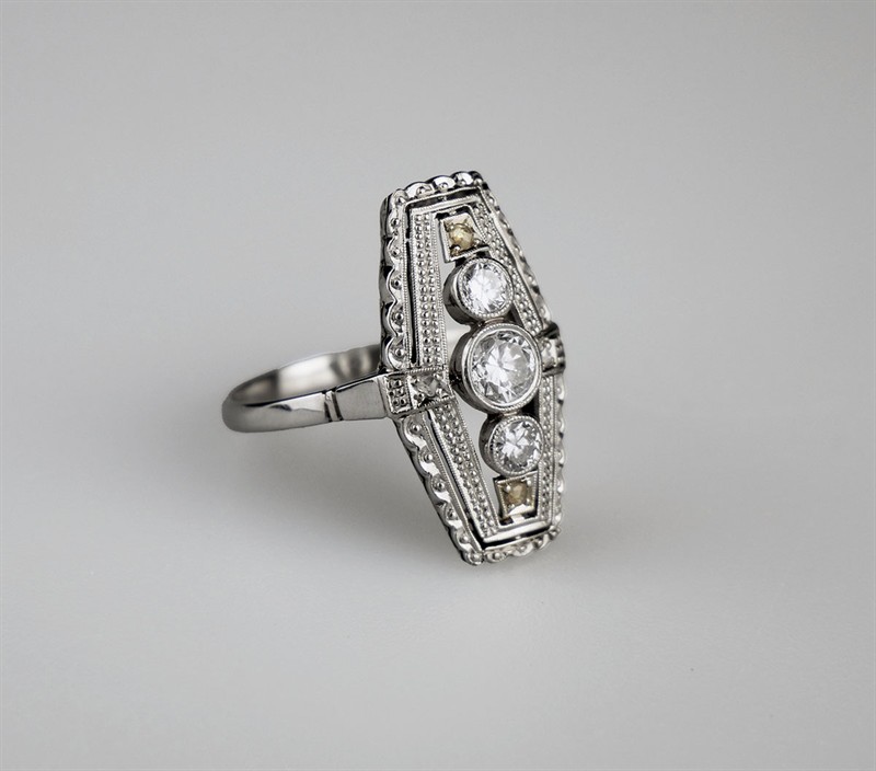 č. 179 466 Zlatý art-deco prsten s diamanty