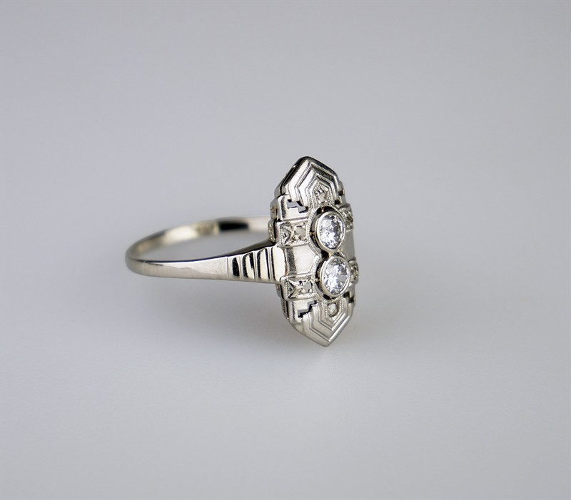 č. 179 854 Zlatý art-deco prsten s diamanty