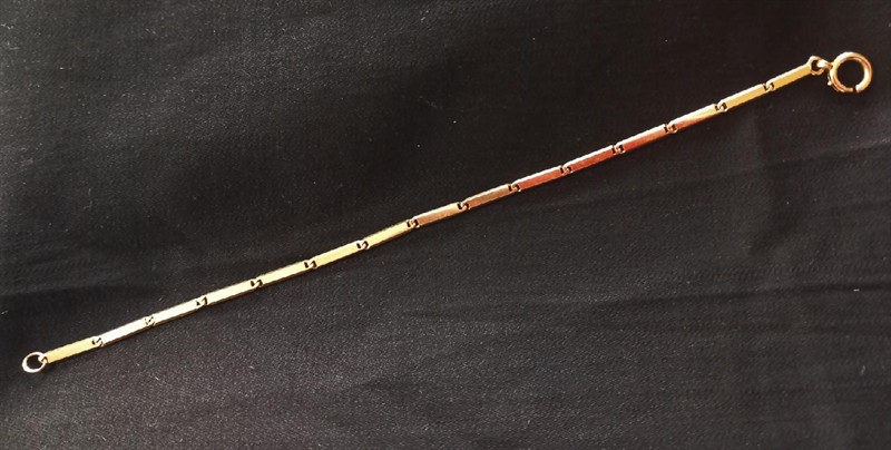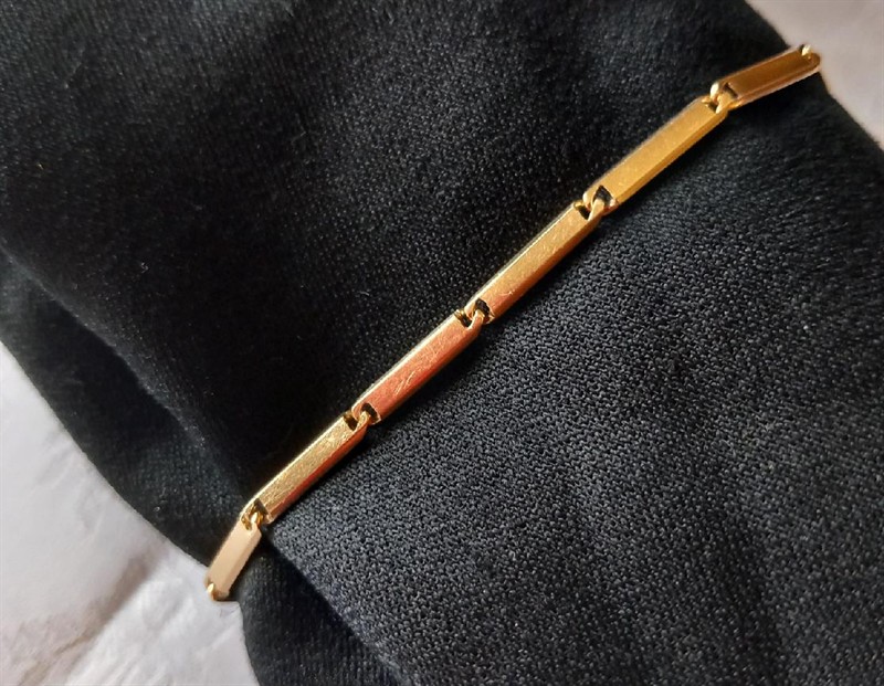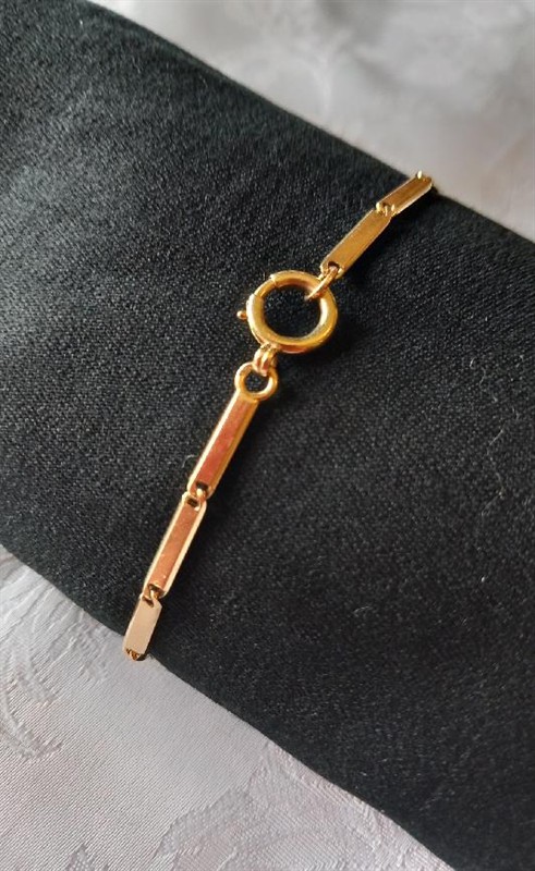 Zlatý článkový náramek se skládá z 15 článků. Je puncovaný platným českým puncem pro zlato 585/1000 a váží 5,30 gramů. Je dlouhý 21 cm včetně uzávěru. Je vhodný pro ženu, která má ráda jemné šperky.