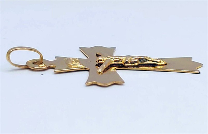 Zlatý přívěsek – kříž z 19,2 ct zlata. Hmotnost Au 1,26 g/800/1000, punc. Portugalsko, poslední čtvrtina 20. století. Velikost 2,8 x 1,8 cm.