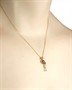 Náhrdelník ze žlutého zlata ryzosti 585/1000 ve tvaru plameňáka se smaragdem, turmalínem a diamanty briliantového brusu o celkové hmotnosti 0,05 ct. Celková hmotnost šperku je 2,88 g. Délka řetízku je 44 cm.