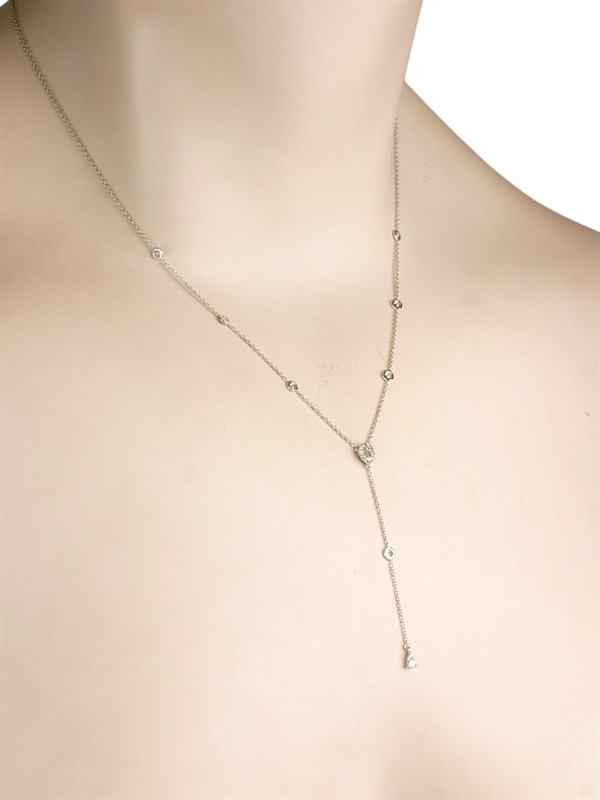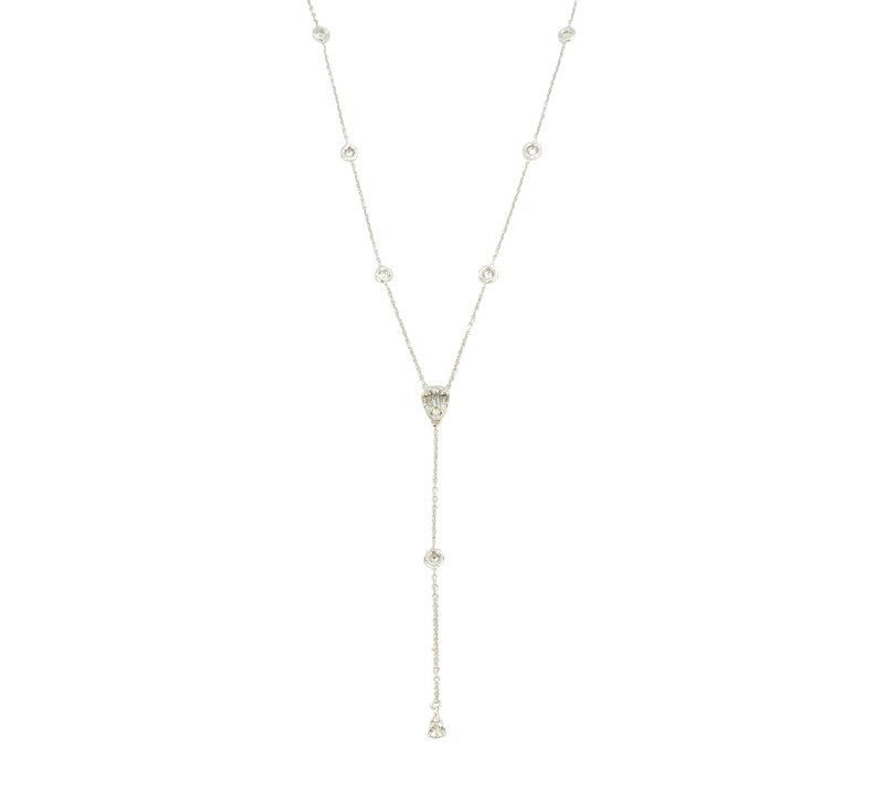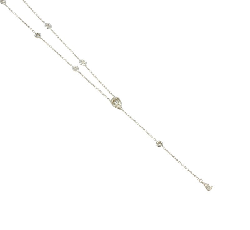 Náhrdelník z bílého zlata ryzosti 585/1000 s diamanty o celkové hmotnosti 0,30 ct. Celková hmotnost šperku je 2,09 g. Délka řetízku je 45 cm.