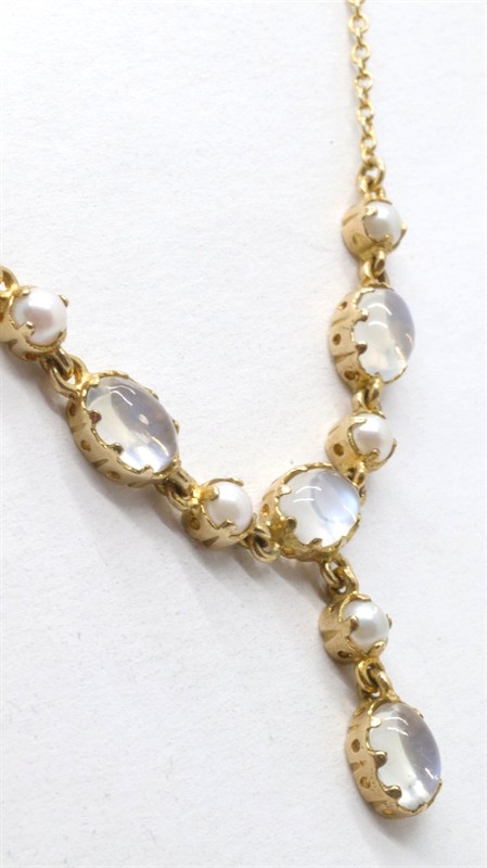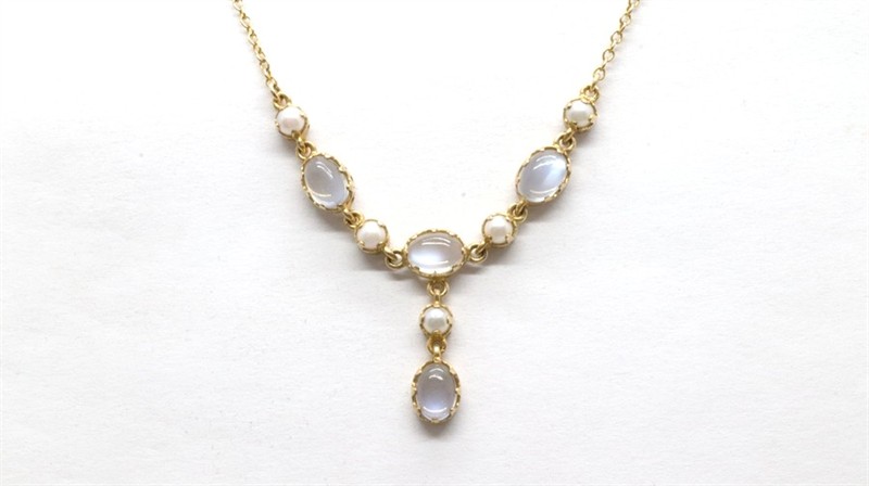 Zlatý náhrdelník s měsíčními kameny a perličkami