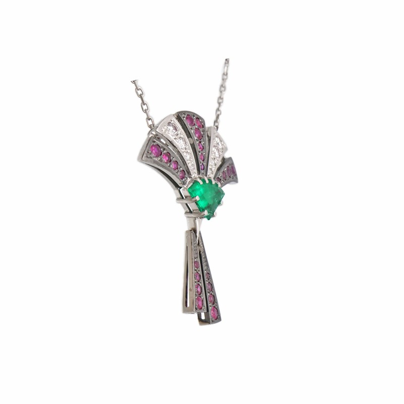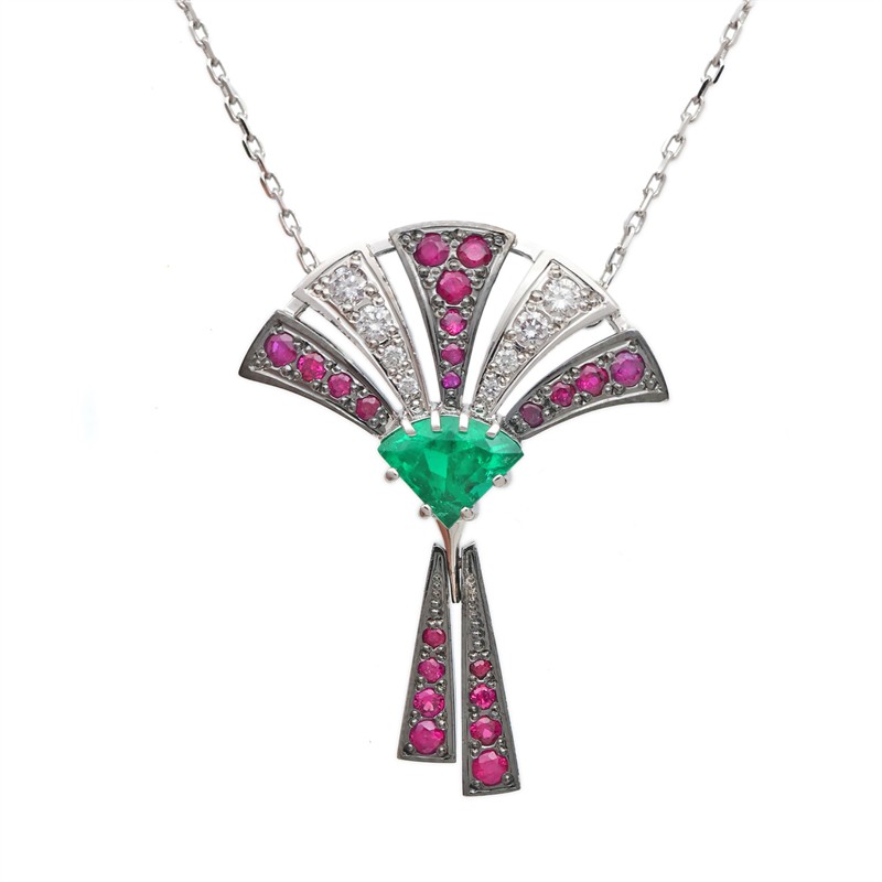 14 karátové zlato 585/1000, celková hmotnost 5,74 g | Design + certifikát | Přírodní kameny vysoké kvality | Přírodní smaragd 0,909 ct | Přírodní diamanty briliantového brusu vzácně bílý + E-F/ 0,208 ct | Přírodní rubíny 22ks: 0,574 ct | Výborný stav, nové | Délka řetízku 40 cm | Výška přívěsku 3,5 cm | Kameny zkontrolovány v gemologické laboratoři | Doložen certifikát pravosti ČGL | Zařizujeme veškerý profesionální zlatnický servis - úpravy velikosti, opravy, rhodiování, čištění, výměnu kamenů, znalecké odhady, certifikace a další služby dle vašich potřeb.