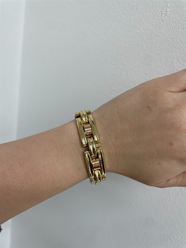 Materiál: žluté zlato o ryzosti 585/1000 Hmotnost: 32,3 g Rozměry: délka 19 cm, šířka 1,5 cm Stav: výborný Původ: náramek opatřen platným puncem Puncovního úřadu České republiky Pro vaše maximální pohodlí nabízíme kompletní zlatnický servis: úpravy velikosti, odborné opravy, rhodiování, výměny kamenů, profesionální čištění, leštění i znalecké odhady. Vše přizpůsobíme vašim přáním.