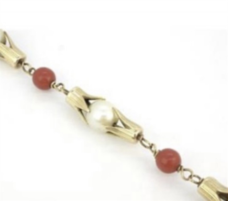 č. 181 408 Zlatý náramek s korály a perlami
