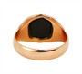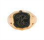 Prsten z růžového zlata ryzosti 375/1000. Do černé tabulky (pravděpodobně onyx) je vyryt monogram JK (?). Velikost prstenu 56, celková hmotnost 5,6 g.