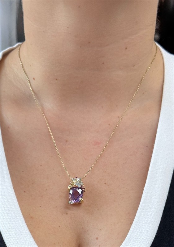Zlatý přívěsek s ametystem, topazy a almandiny