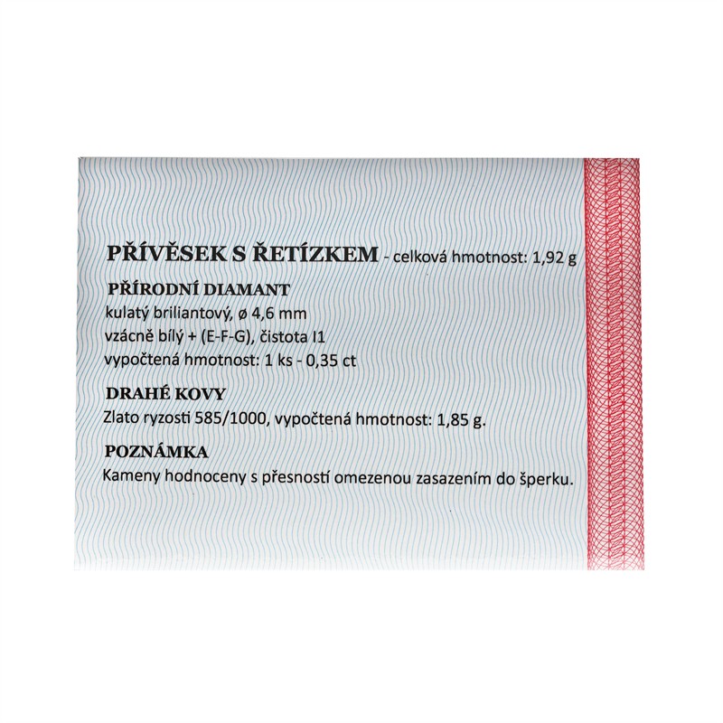 č. 182 888 Zlatý přívěsek s diamantem 0,35 ct + certifikát