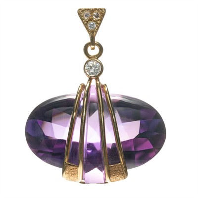 Zlatý přívěsek s přírodním ametystem a diamantem
