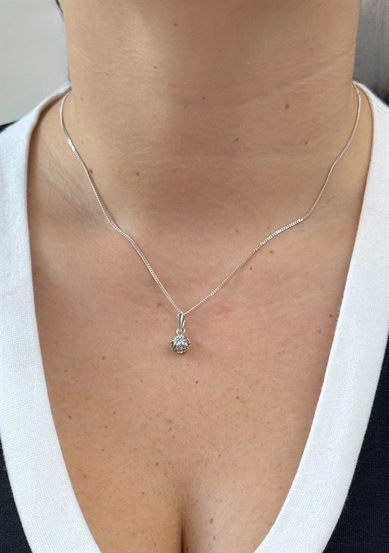 Materiál: bílé zlato o ryzosti 750/1000 Hmotnost: váha 1,35 g Rozměry: výška s ouškem 1,6 cm, průměr 0,8 cm, řetízek není součásti prodeje Drahokamy: - přírodní diamant cca 0,30 ct Stav: výborný Dokumenty: · osvědčení puncovního úřadu Kameny s garancí pravosti zkontrolované v gemologické laboratoři Pro vaše maximální pohodlí nabízíme kompletní zlatnický servis: úpravy velikosti, odborné opravy, rhodiování, výměny kamenů, profesionální čištění, leštění i znalecké odhady. Vše přizpůsobíme vašim přáním.