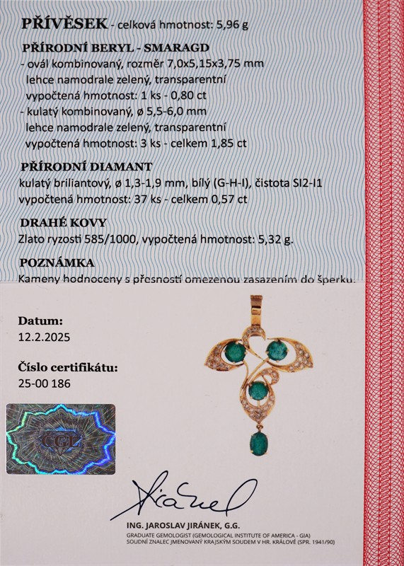č. 180 957 Zlatý přívěsek s přírodními diamanty a přírodními smaragdy