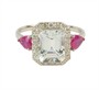 Prsten z bílého zlata ryzosti 585/1000 osazený rubíny o celkové hmotnosti 0,40 ct, diamanty briliantového brusu o celkové hmotnosti 0,30 ct a velkým přírodním akvamarínem o hmotnosti 1,60 ct. Celková hmotnost prstenu je 2,78 g. Velikost 56.
