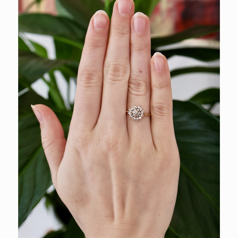 14 karátové zlato 585/1000, celková hmotnost 2,93 g | 2.polovina 20. století | Velikost prstenu 56 (lze upravit) | Velikost hlavy: průměr 1,1 cm | Výborný stav | Zařizujeme veškerý profesionální zlatnický servis - úpravy velikosti, opravy, rhodiování, čištění, výměnu kamenů, znalecké odhady, certifikace a další služby dle vašich potřeb.